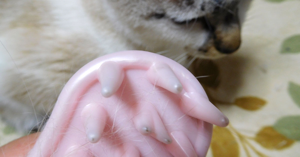 スリッカーブラシで毛玉をほぐしながら、やさしくブラッシングしてあげてください。